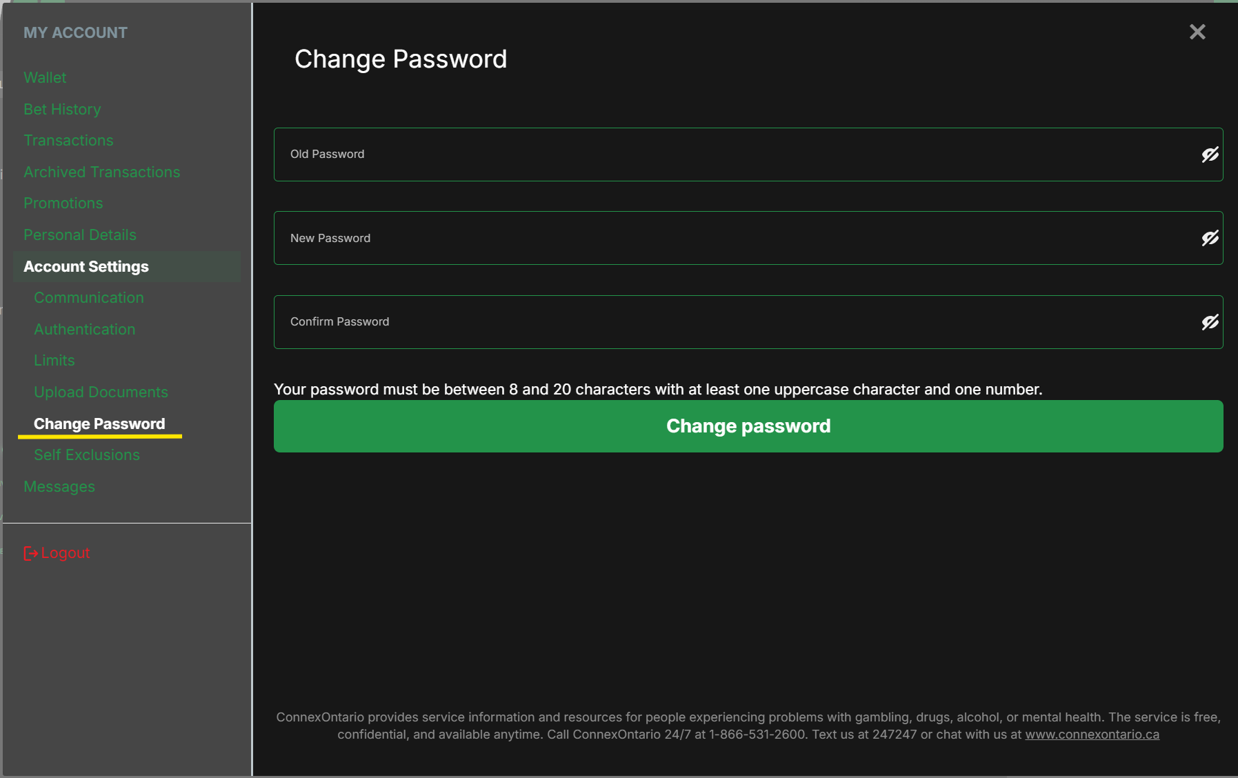 - Proceed to enter your "New Password", and select "Change Password" when completed.