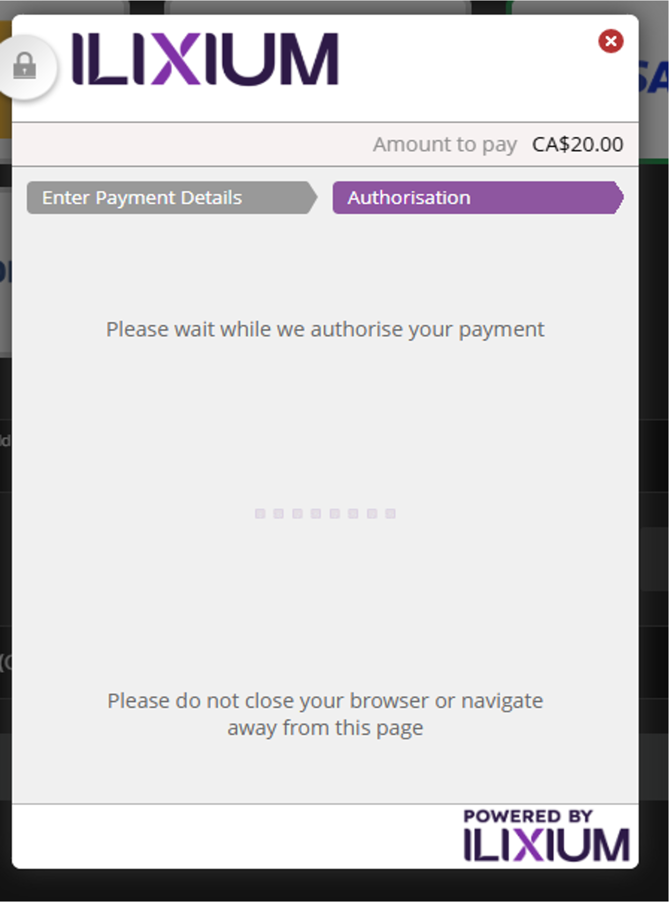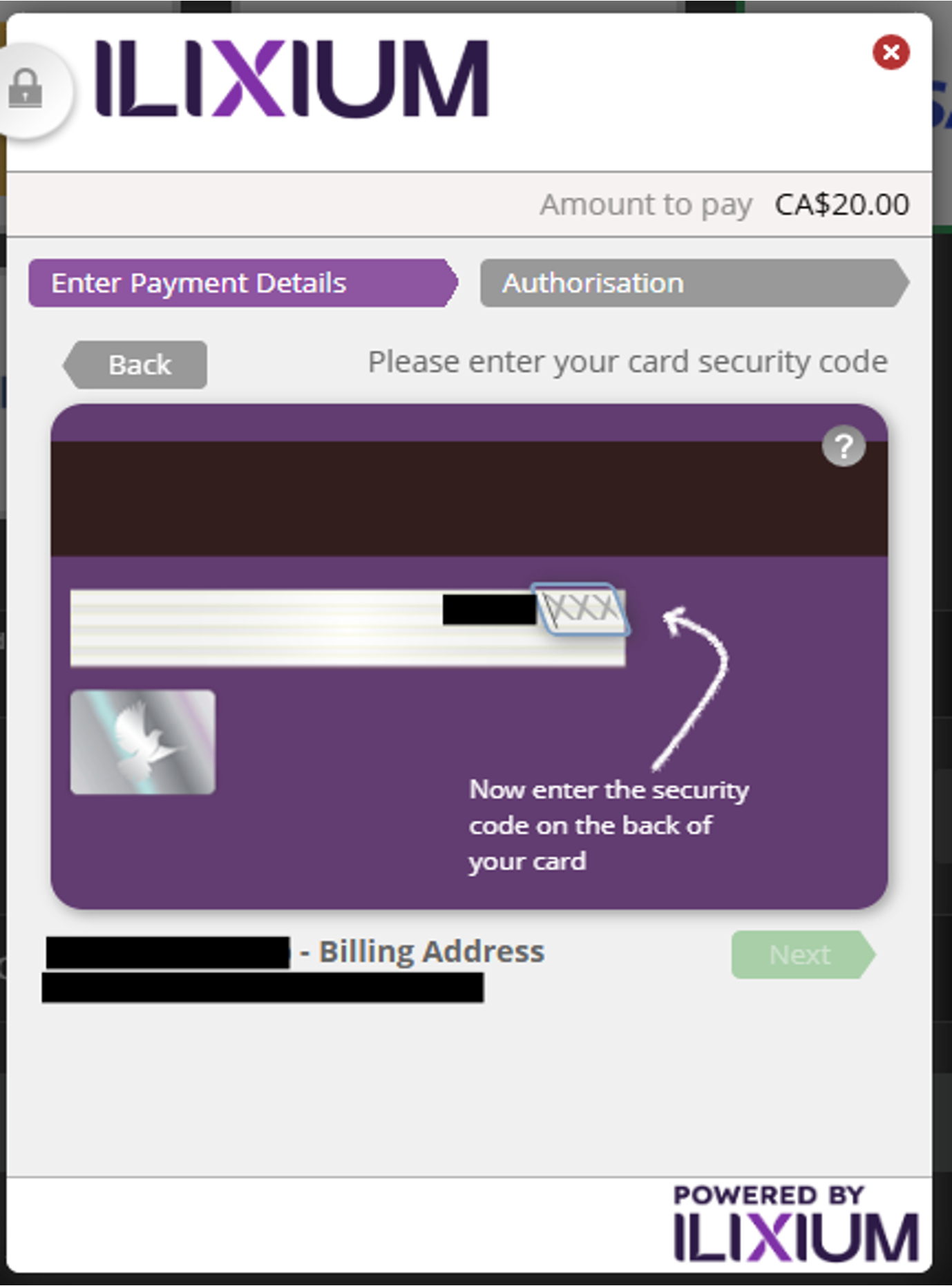 The next step will display a payment processor window where you will need to enter your payment card details.