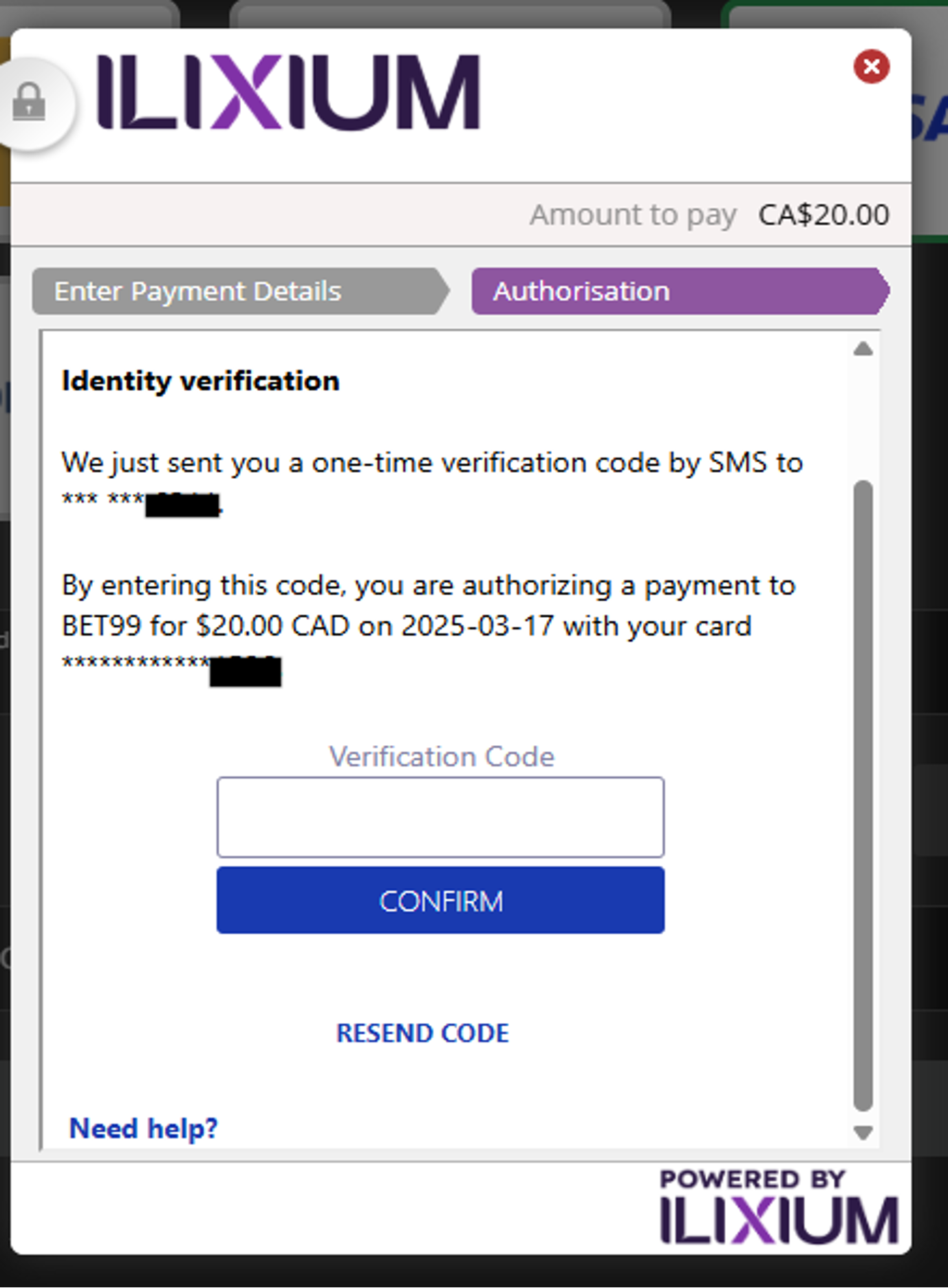 The next step is to confirm your willingness to make the deposit by entering the code. There are two options to choose from, SMS or call.