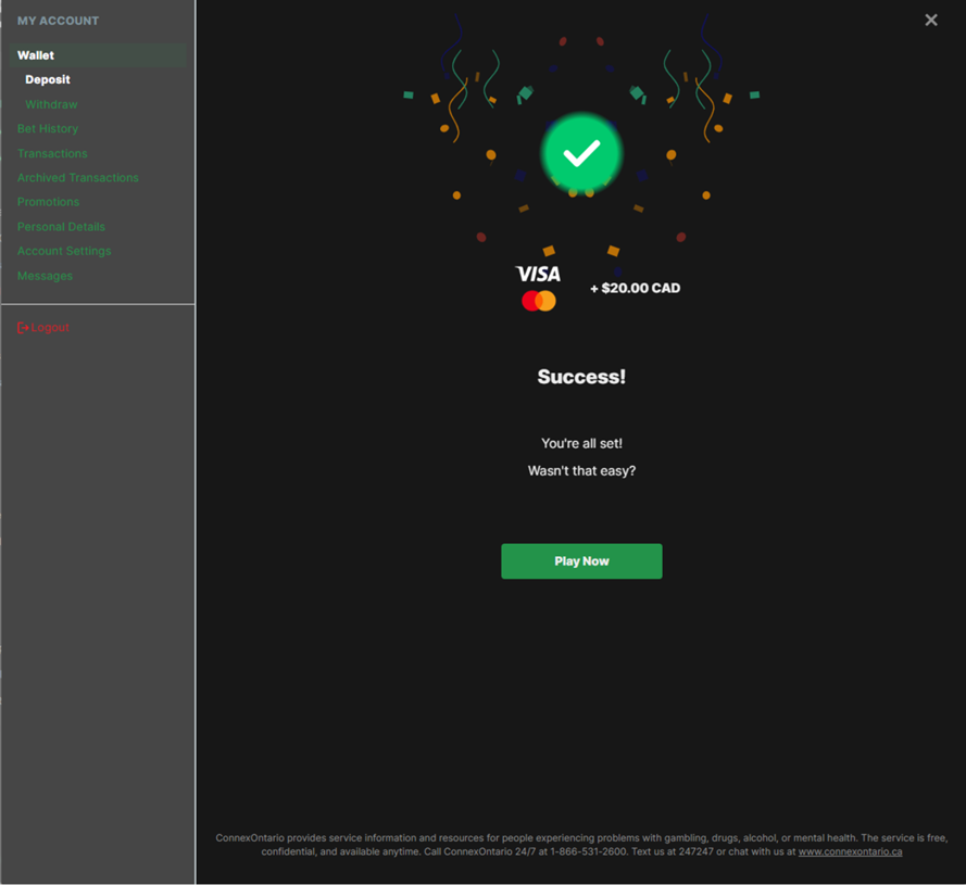 You will also receive an email confirming that your deposit was successful.