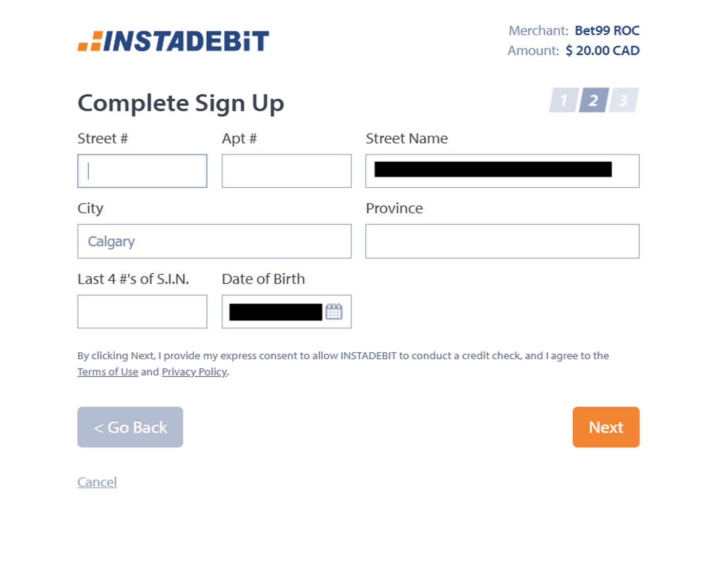 Enter your residential address, date of birth and the last 4 symbols of your SIN