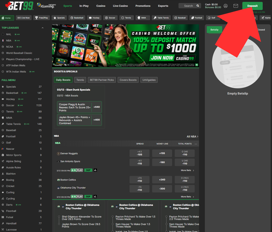 Log in to your BET99 account and click the Deposit button located in the top right corner of the page.