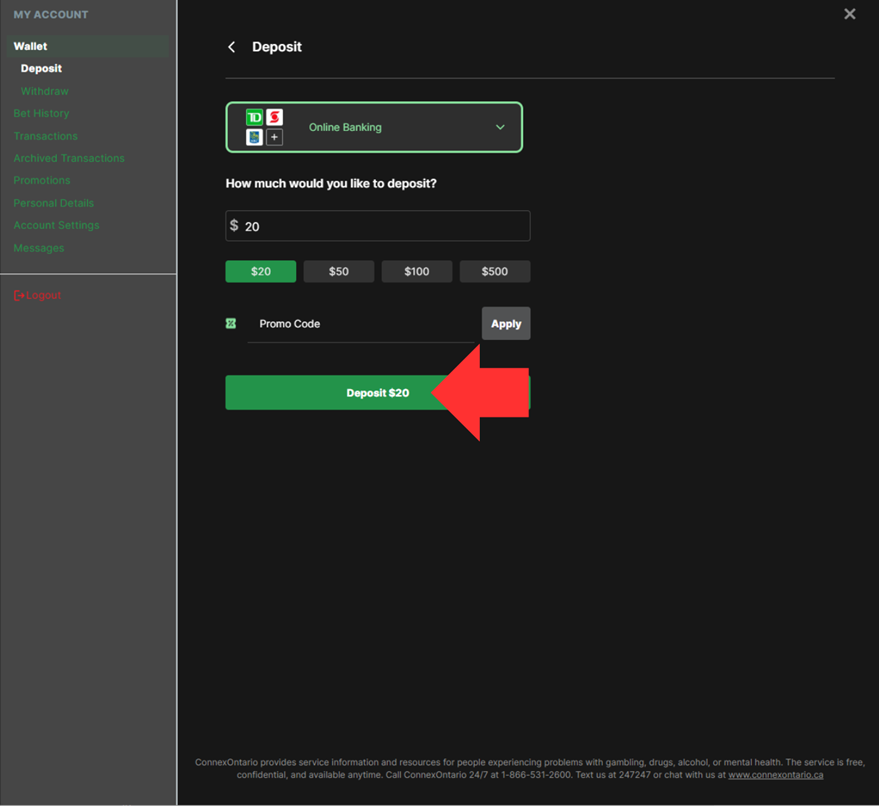 Follow the steps below to complete your deposit.