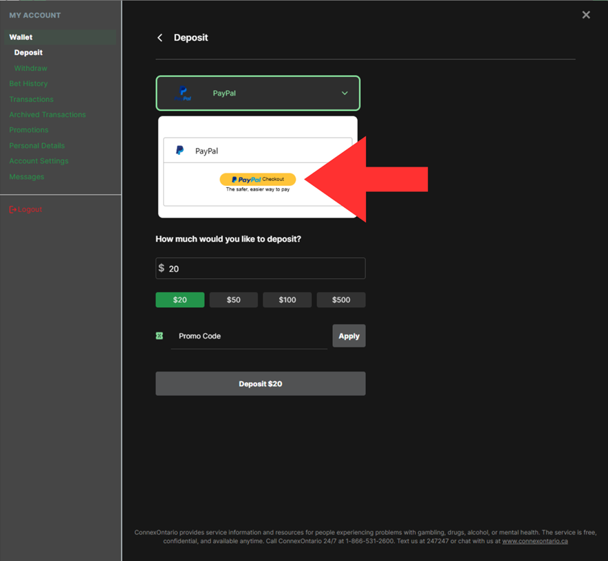 After logging in to PayPal, the window will go back to the deposit page. Enter the amount and click Deposit.